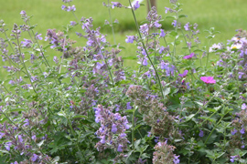 - l'odorat : Nepeta 'Walkers Low' une vivace aux fleurs et feuillage doucement parfumés