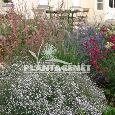 Ce Gypsophile produit une nuage de minuscules fleurs doubles d'un rose très pâle, presque blanc. Il est beau en bordure de massif et c'est une excellente fleur à couper.
