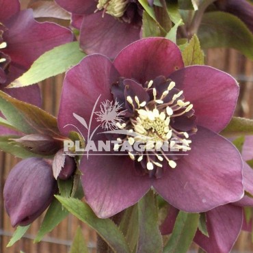 Une sélection d'hellébore qui produit des fleurs rouge pourpre de février à avril. Ses touffes de feuillage persistant, vert foncé, lustré forment un excellent couvre-sol en sol riche à l'ombre. Cette variété est cultivée à partir de semis, donc la couleur des fleurs peut être variable.