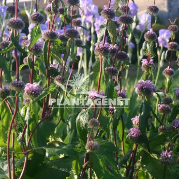 Sur une touffe de grandes feuilles dentelées se dressent de longues tiges pourpres bien droites portant des fleurs améthyste. Préfère un sol sec, drainé. Supporte le calcaire. Un phlomis herbacé qui disparaît en hiver et repart le printemps suivante.
