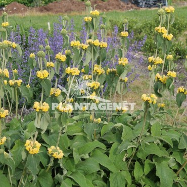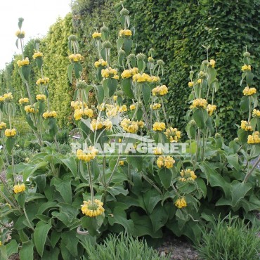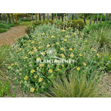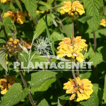 Vivace arbustive, ce Phlomis forme de belles fleurs tubulaires jaune doré de mai à juillet. Ses feuilles sont en forme de coeurs gaufrés. Elle résiste très bien à la sécheresse
