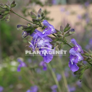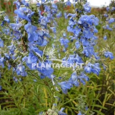 Une sauge haute et élégante qui produit des épis de fleurs bleu azur au bout de tiges souples. Son feuillage est parfumé et ses fleurs sont comestibles. Elle est facile à cultiver en plein soleil.