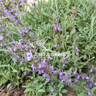 La sauge blancoana forme un buisson de feuillage aromatique, persistant, argenté qui s'étale bien. Elle produit des épis longs et arqués de fleurs bleu lilas en juin et juillet. Elle pousse facilement dans un sol sec en plein soleil et supporte le calcaire.
