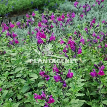 Une sauge arbustive qui produit de mai à novembre de nombreuses fleurs veloutées, violet foncé. Son feuillage semi-persistant et très aromatique et embaume l'air d'un parfum de cassis si on le touche. Elle préfère un sol drainant mais pas trop sec, en plein soleil. Elle supporte bien le calcaire.