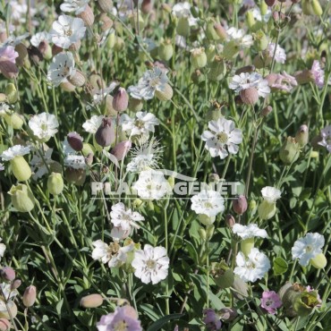 Voici un Silène au feuillage tapissant, vert gris et persistant. Elle produit des fleurs blanc rosé en abondance tout l'été. De culture facile en plein soleil, elle peut être plantée entre des dalles où elle résiste à un léger piétinement.