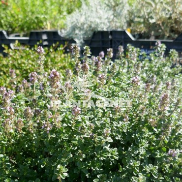 Ce thym tapissant, de croissance vigoureuse, s'étale bien et résiste à l'humidité d'hiver mieux que les autres espèces. C’est un excellent couvre-sol persistant pour plein soleil aux feuillages verts gris et fleurs rose pâle. Recommandé en remplacement de gazon, entre les dalles, etc.