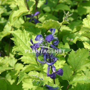 Arbrisseau formant un buisson touffu et vigoureux de feuillage caduc vert foncé grisâtre. Sa floraison généreuse en août et septembre est d'un bleu violacé intense . Pour massif sec ou un grand rocaille, il est rustique en sol bien drainé et exposition ensoleillée. Son feuillage aromatique exhale un parfum de térébinthe.
