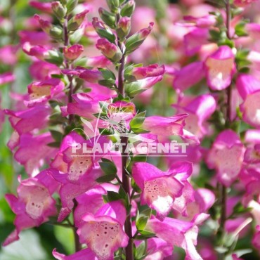 Un hybride de la Digitalis purpurea et l'Isoplexis canariensis avec des très grandes hampes de fleurs rose foncé éclairées par une gorge jaune crème. Longueur de floraison impressionnante. Sol frais mais bien drainée à la mi-ombre.