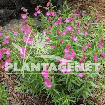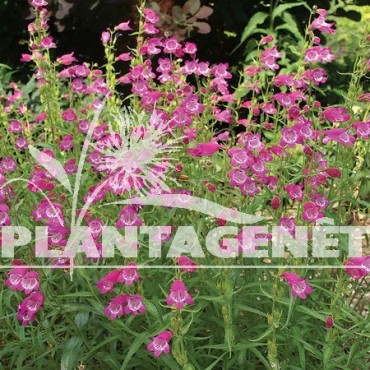 Penstemon Red Rocks produit des épis de grandes fleurs tubulaire rose foncé tout l'été au dessus un buisson de feuillage, étroit, luisant, vert foncé.