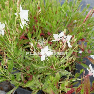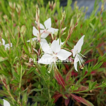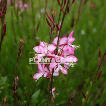 Cette nouvelle obtention est originale avec des fleurs bicolores, blanches bordées de rose foncé. Elle est tout aussi florifère et résistante à la sécheresse que les autres variétés.