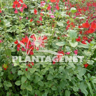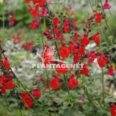 Voici une sauge arbustive aux petites feuilles vertes aromatiques avec des fleurs relativement grandes d'une magnifique couleur rouge écarlate. Elle est de très longue floraison.