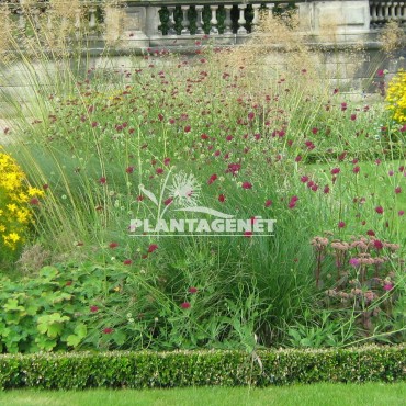 Très proche des scabieuses, Knautia Macedonica fait des fleurs en pompons rouge bordeaux intense. Ce sont des plantes florifères et faciles à cultiver. Elle se mélange harmonieusement avec des graminées.