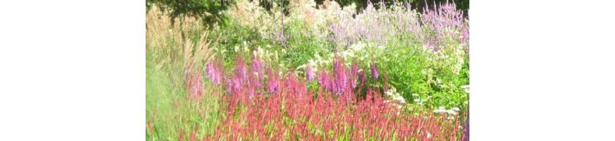 D'abondants épis de fleurs rouge feu se développent sur cette Persicaria dense et vigoureuse en été et à l'automne. Elle est facile dans tous les sols sauf les plus secs.