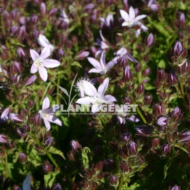 Voici la campanule des murets et des rocailles. C'est un Couvre-sol au feuillage vert pâle et aux clochettes blanches.