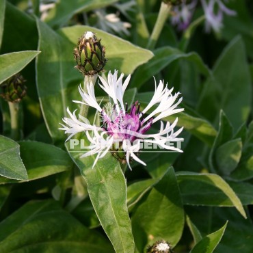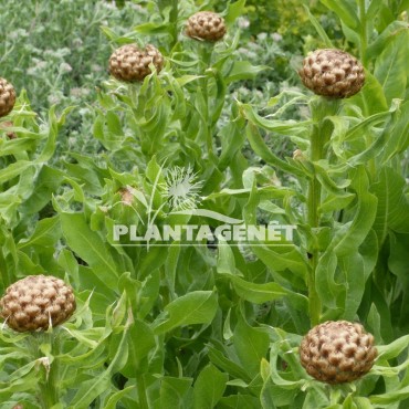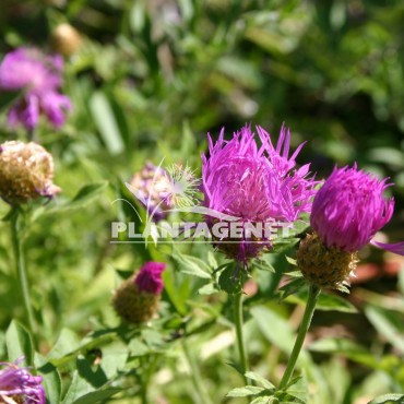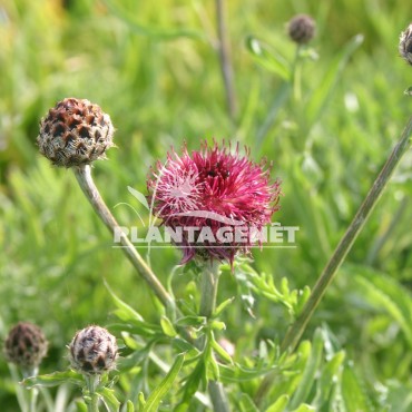 Cette grande Centaurée a des fleurs de chardon pourpre foncé et résiste bien à la sécheresse. Son feuillage est vert et très découpé.