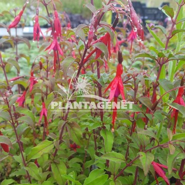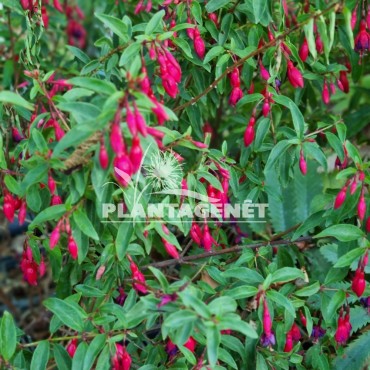 Un grand fuchsia qui est relativement rustique donc à utiliser en massif, bac ou petite haie, mais à protéger en hiver dans les régions les plus froides. Fleur bicolore rouge et violette de mai à septembre. Préfère un sol riche à mi-ombre.