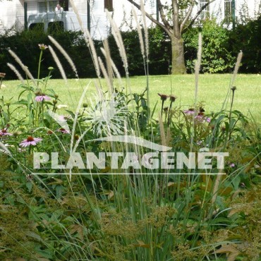 Cette variété de Pennisetum, grande et vigoureuse graminée , formera une touffe de 1m2 et 1 m de haut, avec de longs épis compacts beige clair.
