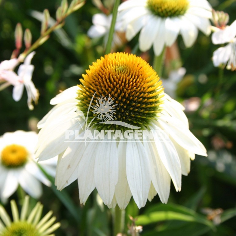 Voici un rudbeckia pourpre aux grandes fleurs blanches et avec un cœur conique vert doré. Elle est facile à cultiver dans un sol bien drainé en plein soleil et se ressème légèrement.