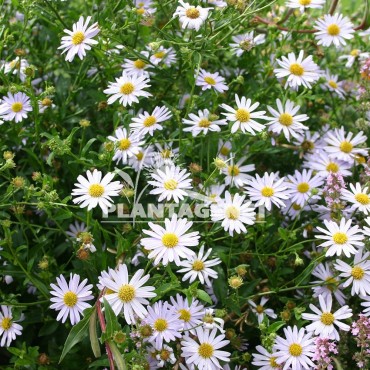 Le Kalimeris est une Aster d'été qui est très facile à cultiver même en sol sec. Cette variété donne une profusion de fleurs blanches en forme de marguerite tout l'été.