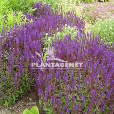 Cette plante produit des touffes bien compactes aux épis floraux bleu nuit. C'est la première Sauge herbacée à fleurir.