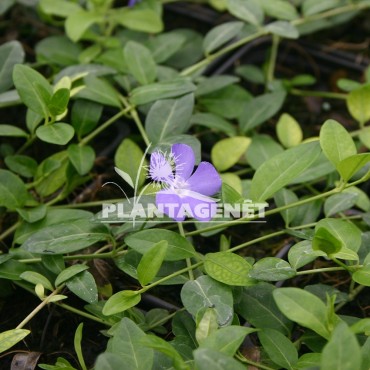 C'est une petite Pervenche qui porte des fleurs bleues plus grandes que celles de l'espèce. Son feuillage vert et luisant fait un très bon couvre-sol sous des arbres.