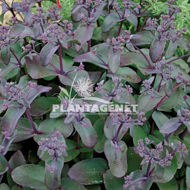 Magnifique feuillage succulent et pourpre pour ce Sédum. Des fleurs rouges émergent en fin d'été. C'est une plante compacte.