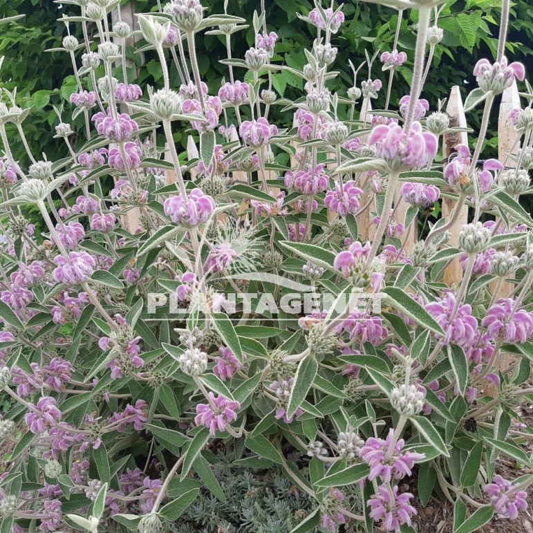 Ce petit arbuste au feuillage persistant, gris vert et laineux a un port dense et arrondi. Il produit de belles fleurs roses en été, résiste à la sécheresse et s'adapte aux sols secs et calcaires.